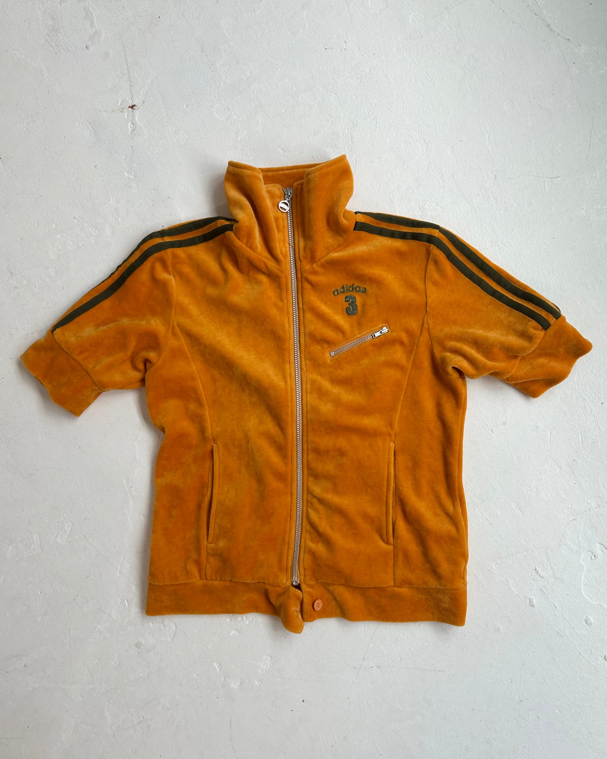Vintage Adidas 2000s velour zip-up. Short sleeved design, embroidered detail and a high neck.