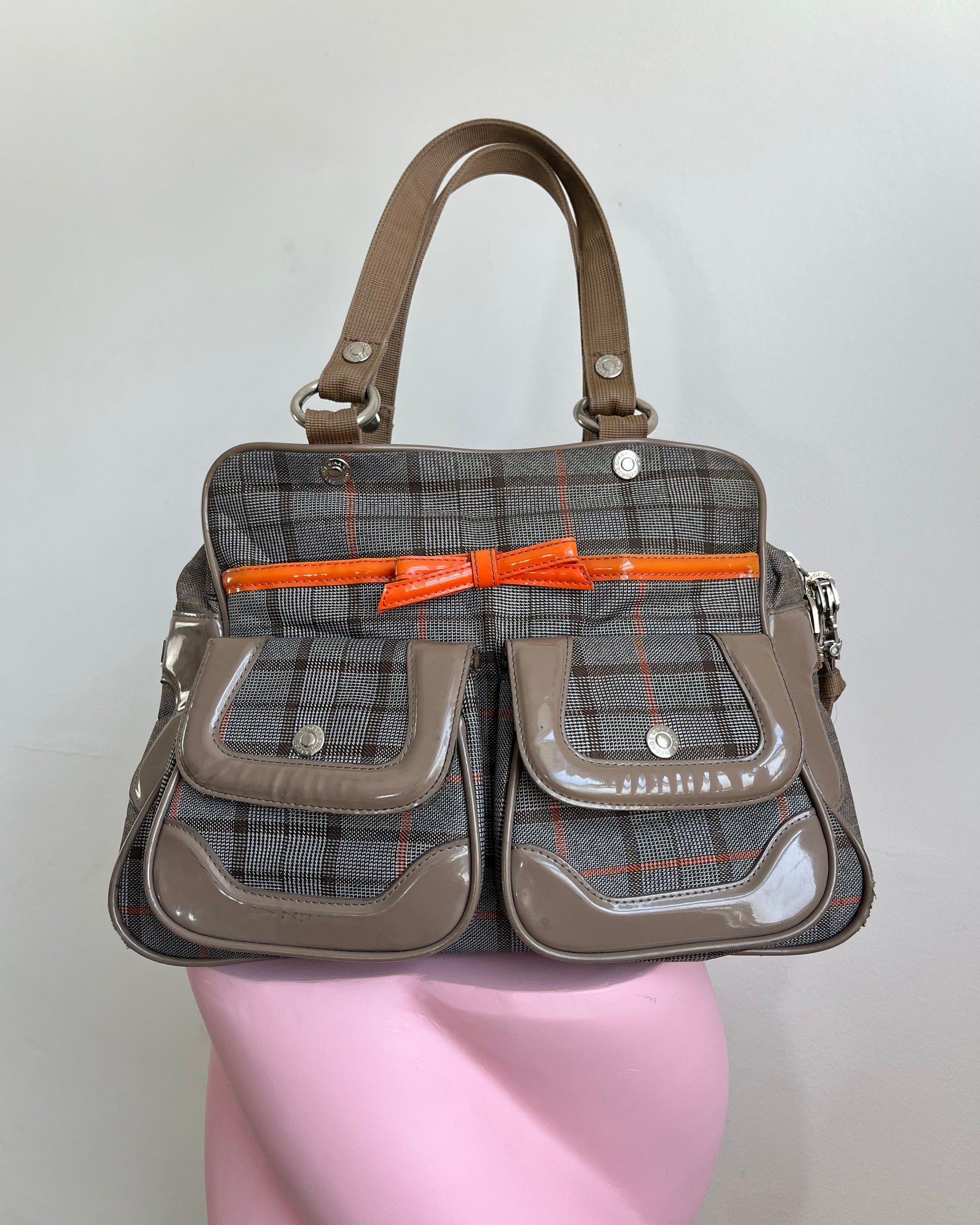 Vintage George Gina & Lucy tartan utility style shoulder bag with bow and pocket detail.