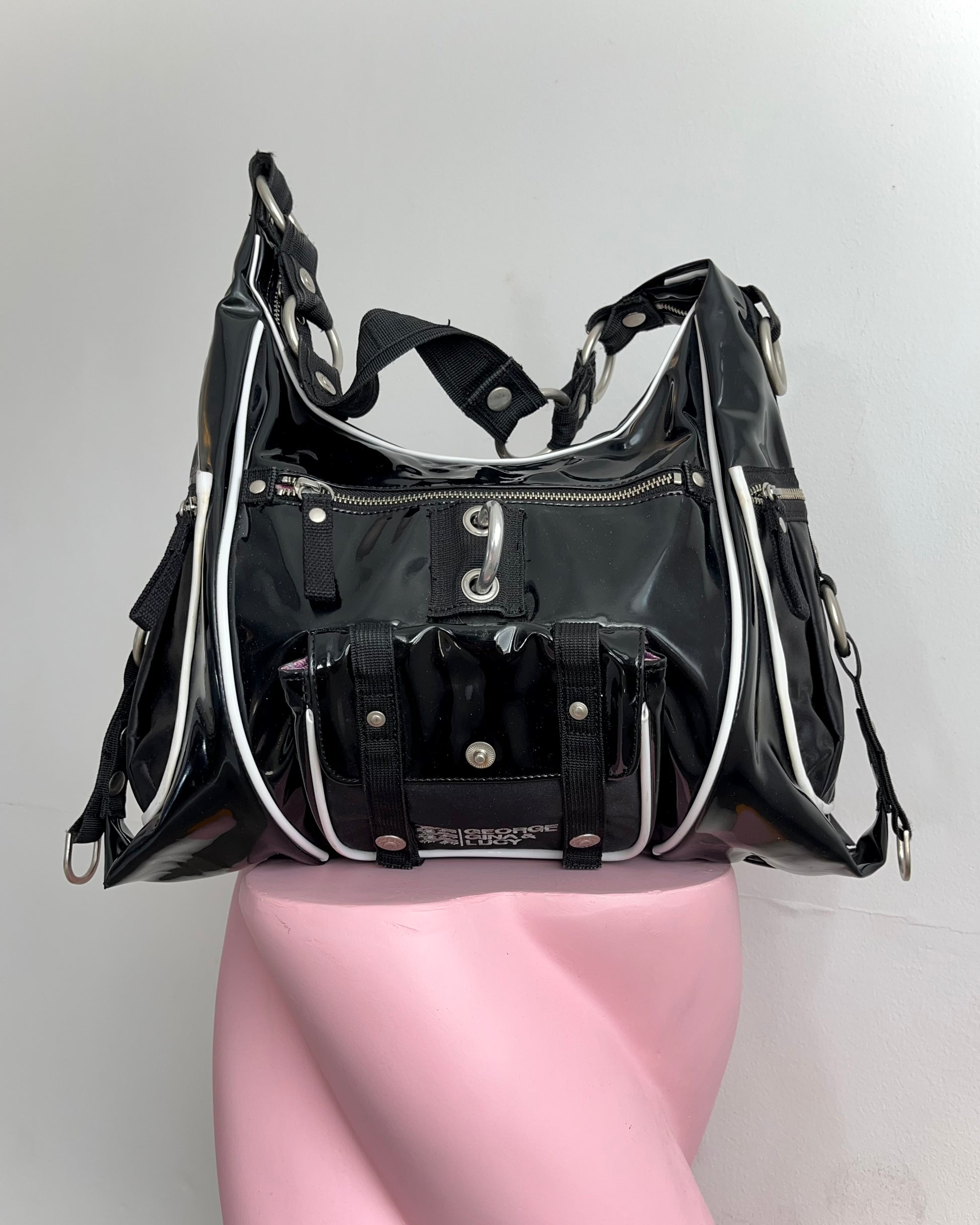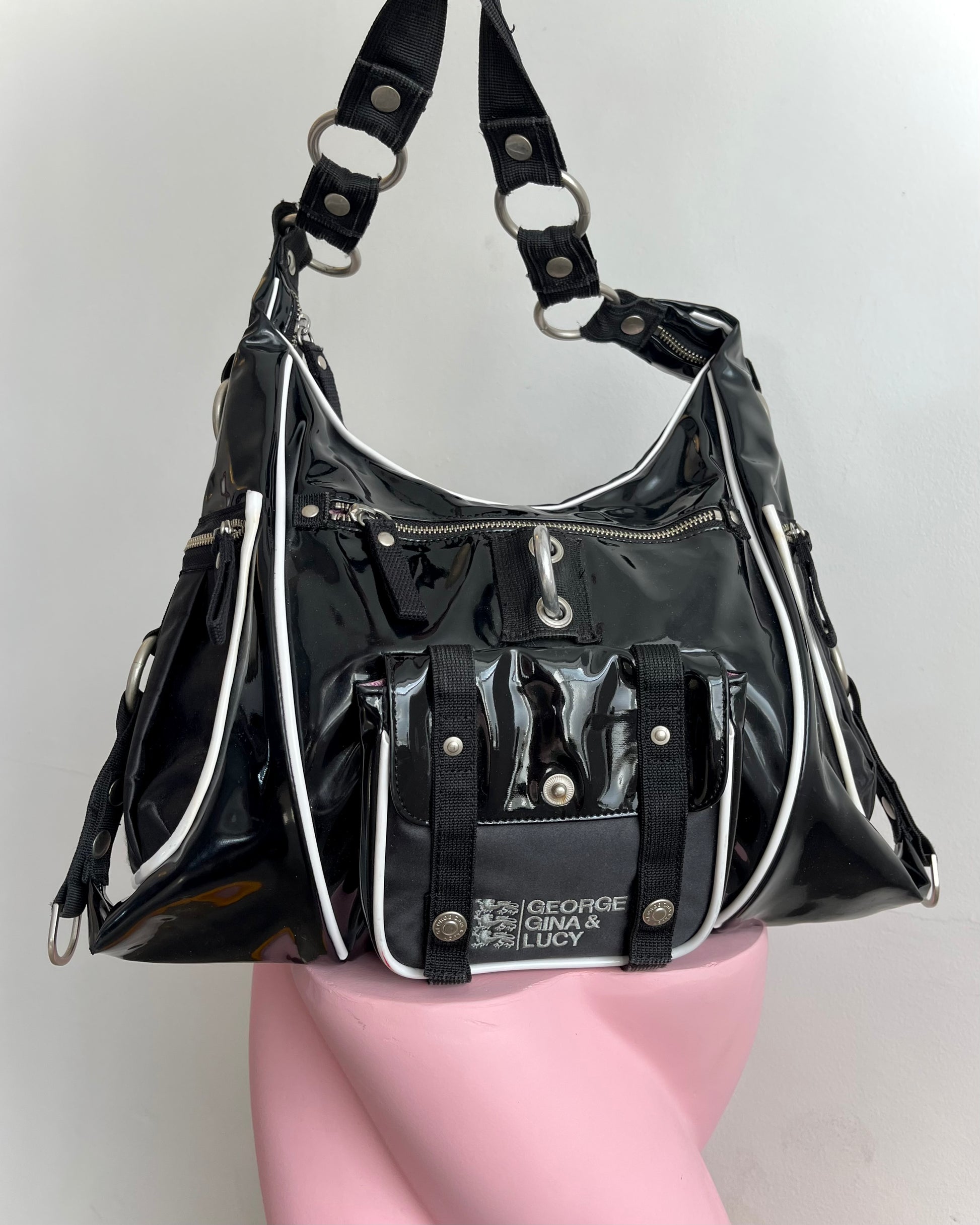 Vintage George Gina & Lucy utility shoulder bag with buckle and pocket detail.