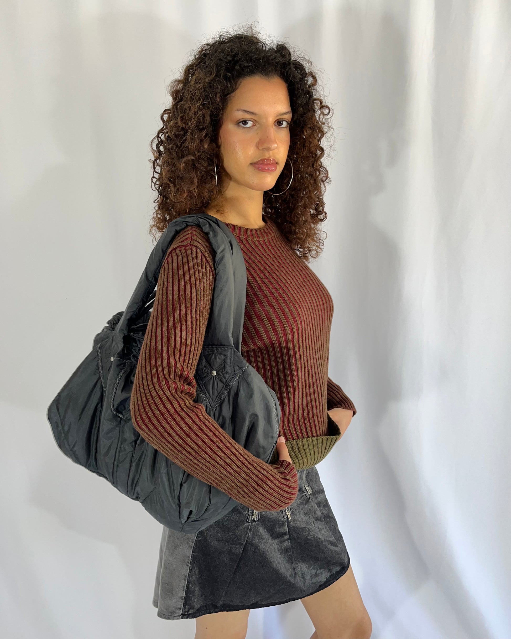 Vintage Jean Paul Gaultier 90s ribbed knit jumper with fold up button detail and turtleneck accessory.
