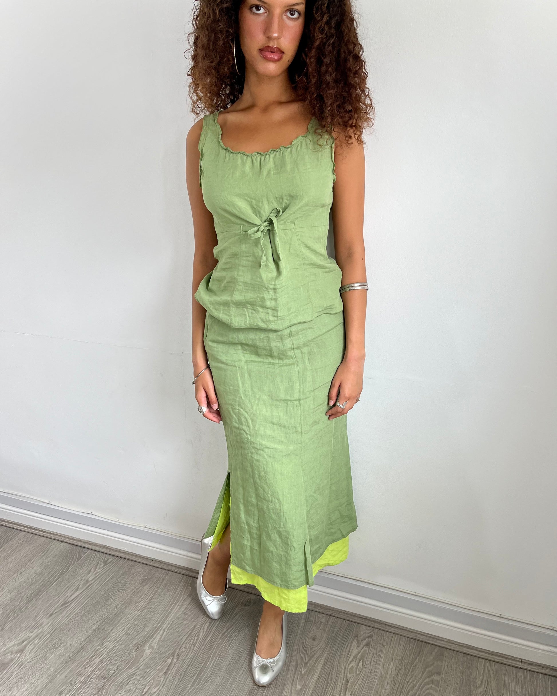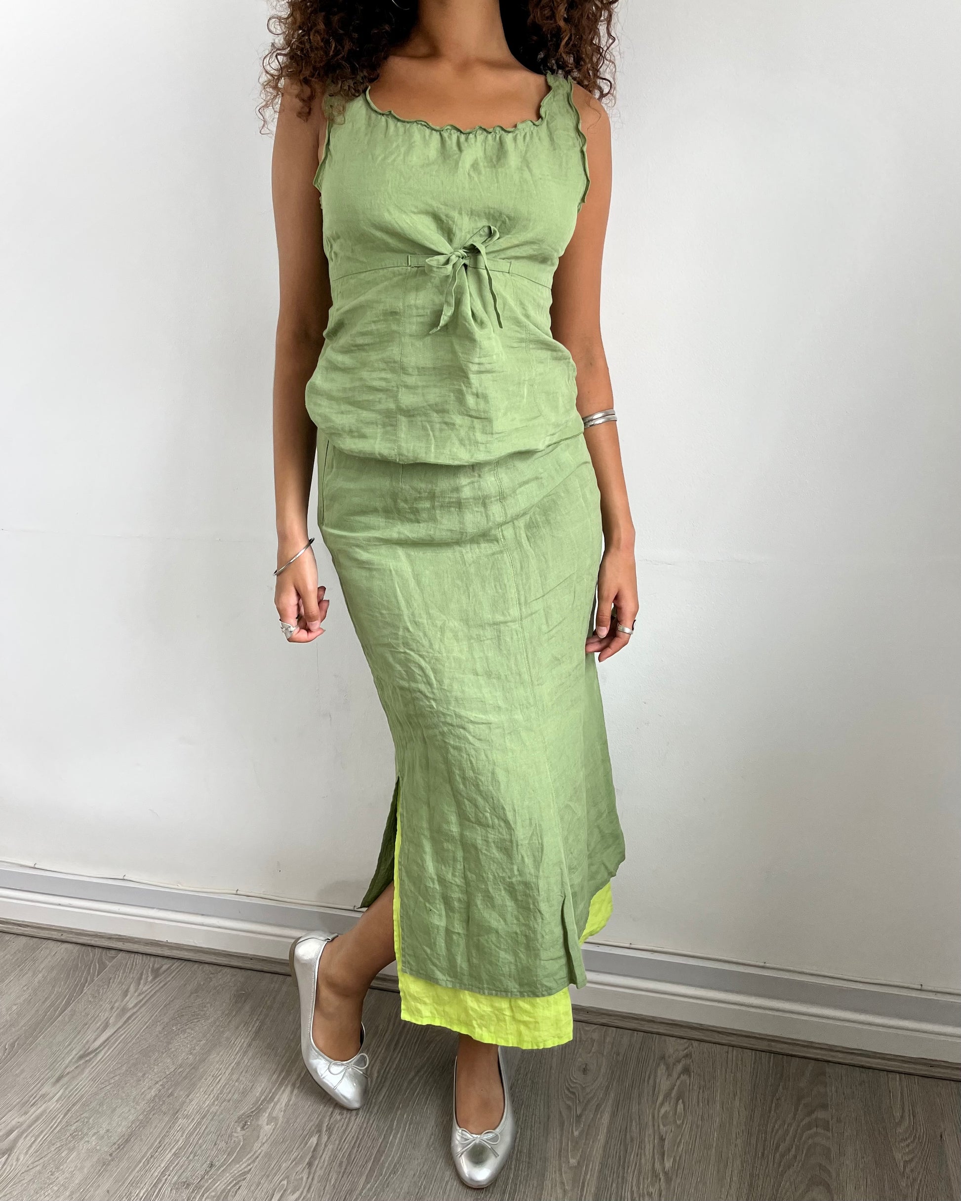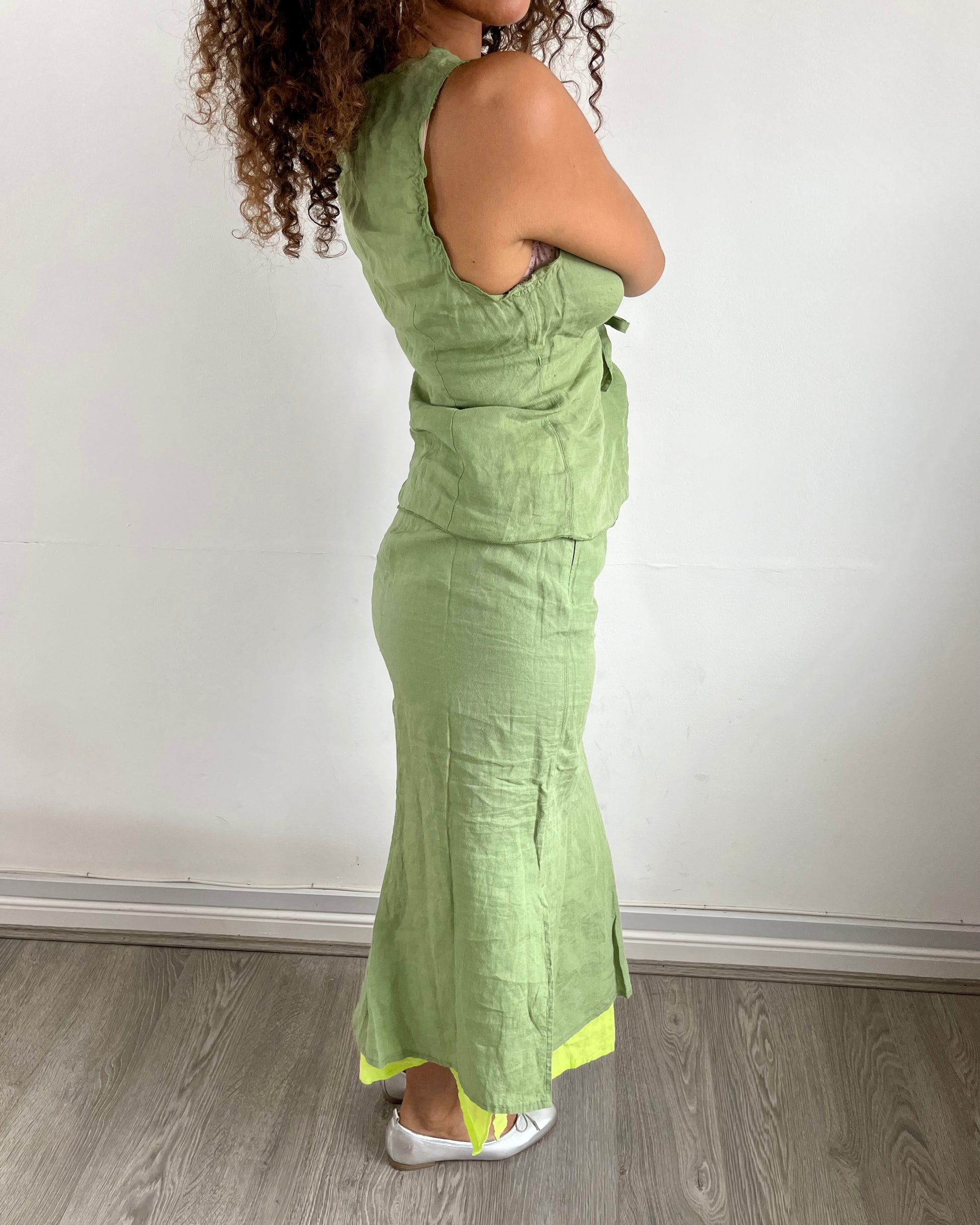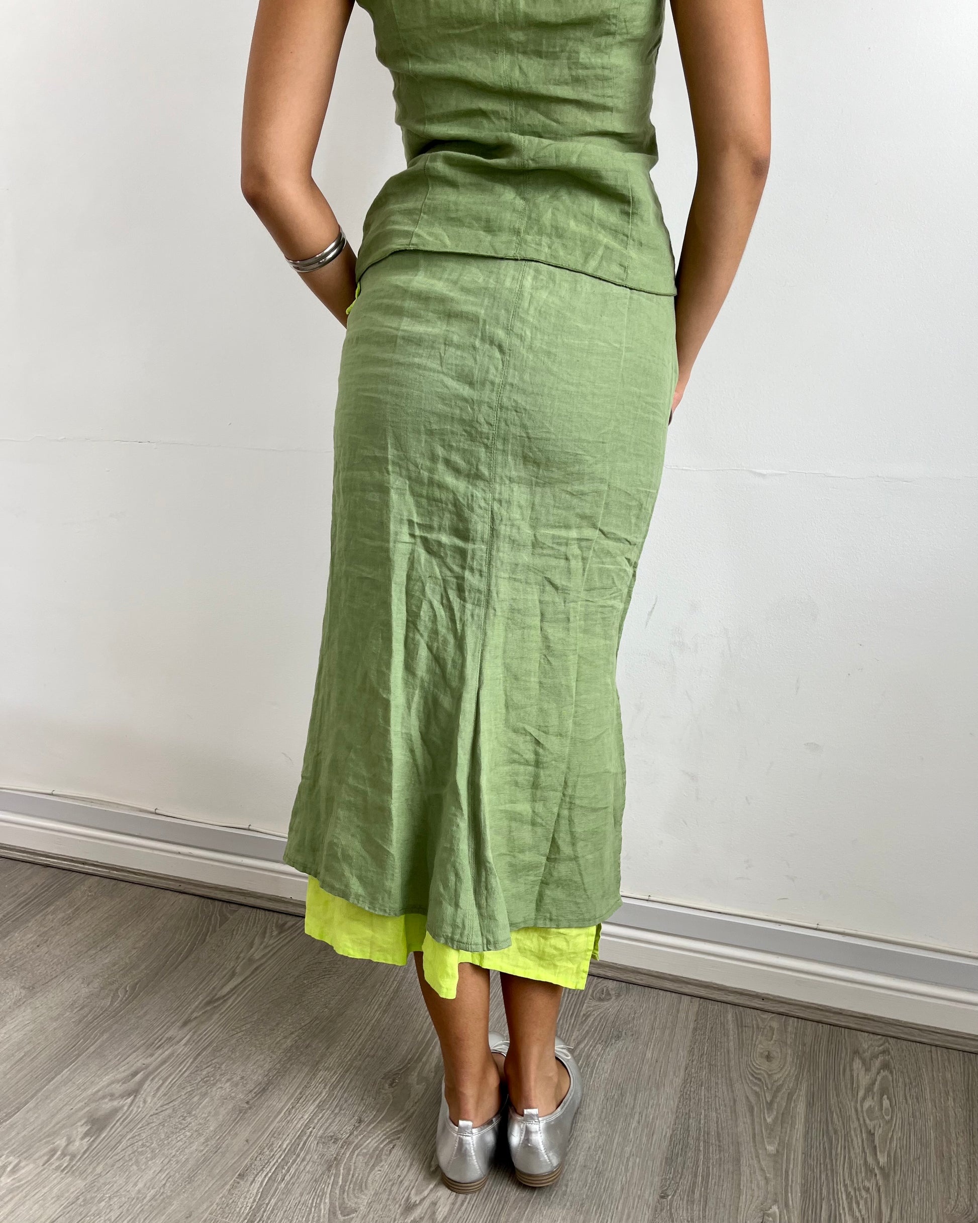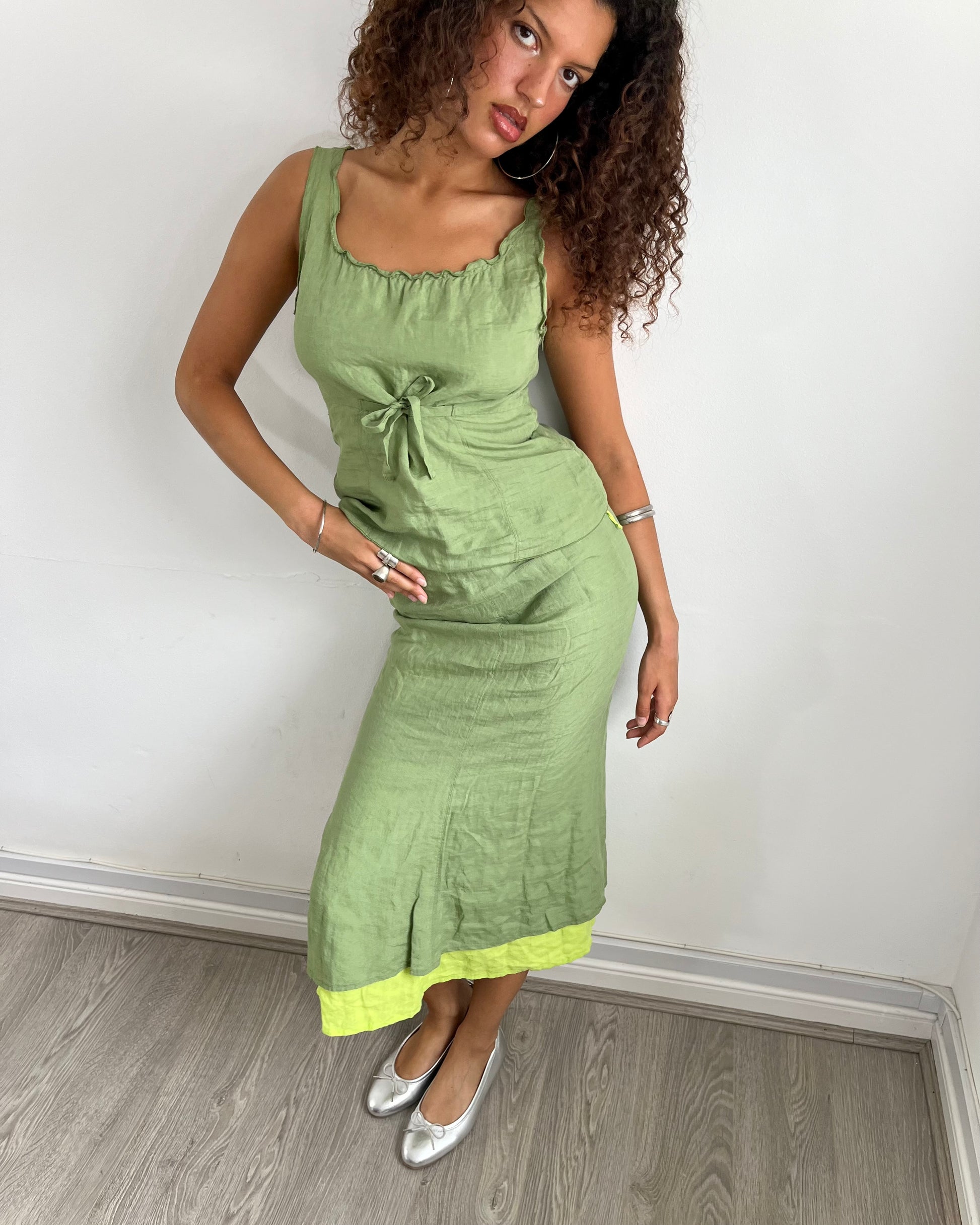 Vintage Max&Co. pure linen set. Matching top and double layered midi skirt.
