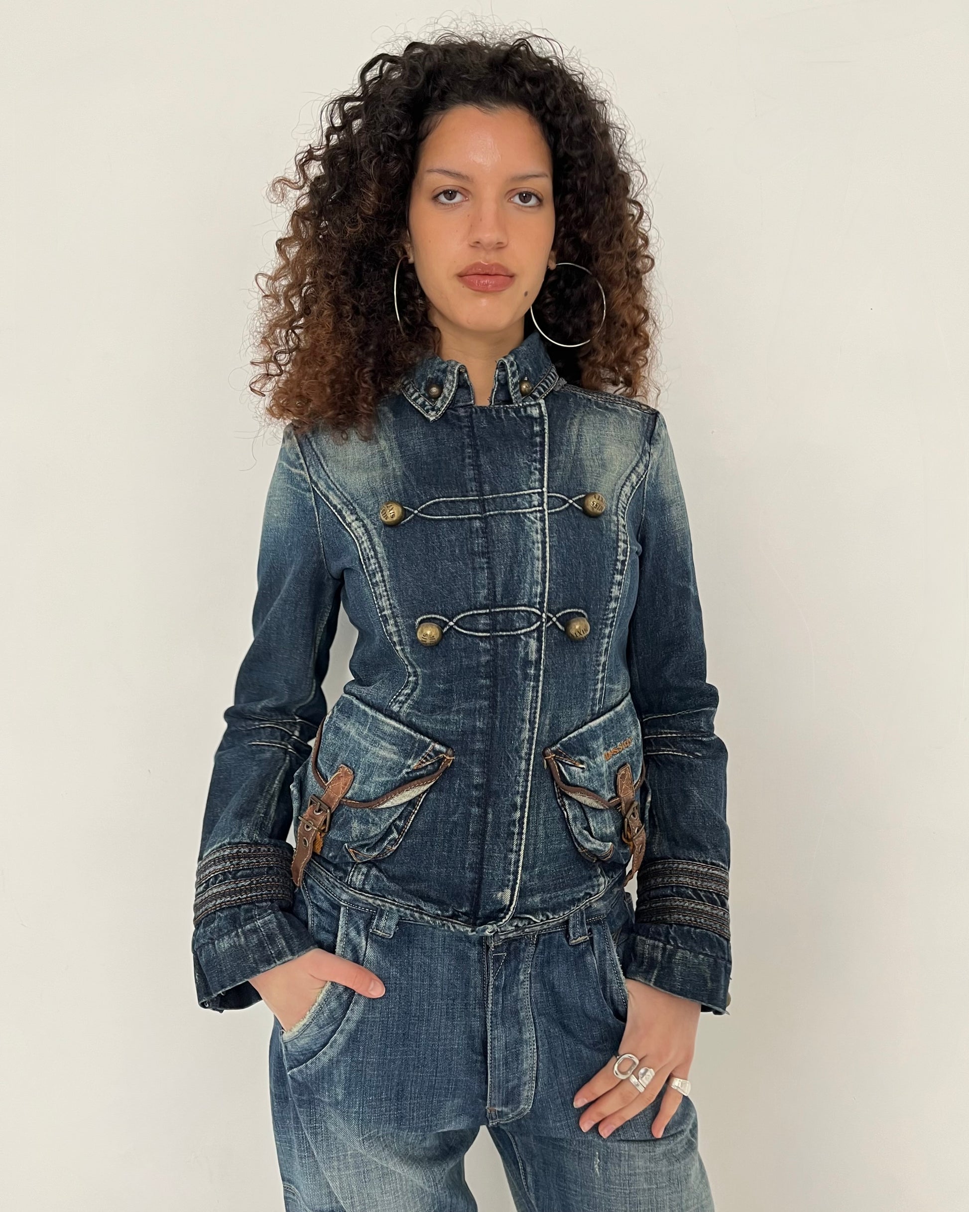 Vintage Miss Sixty marching band style denim jacket. Zip up.