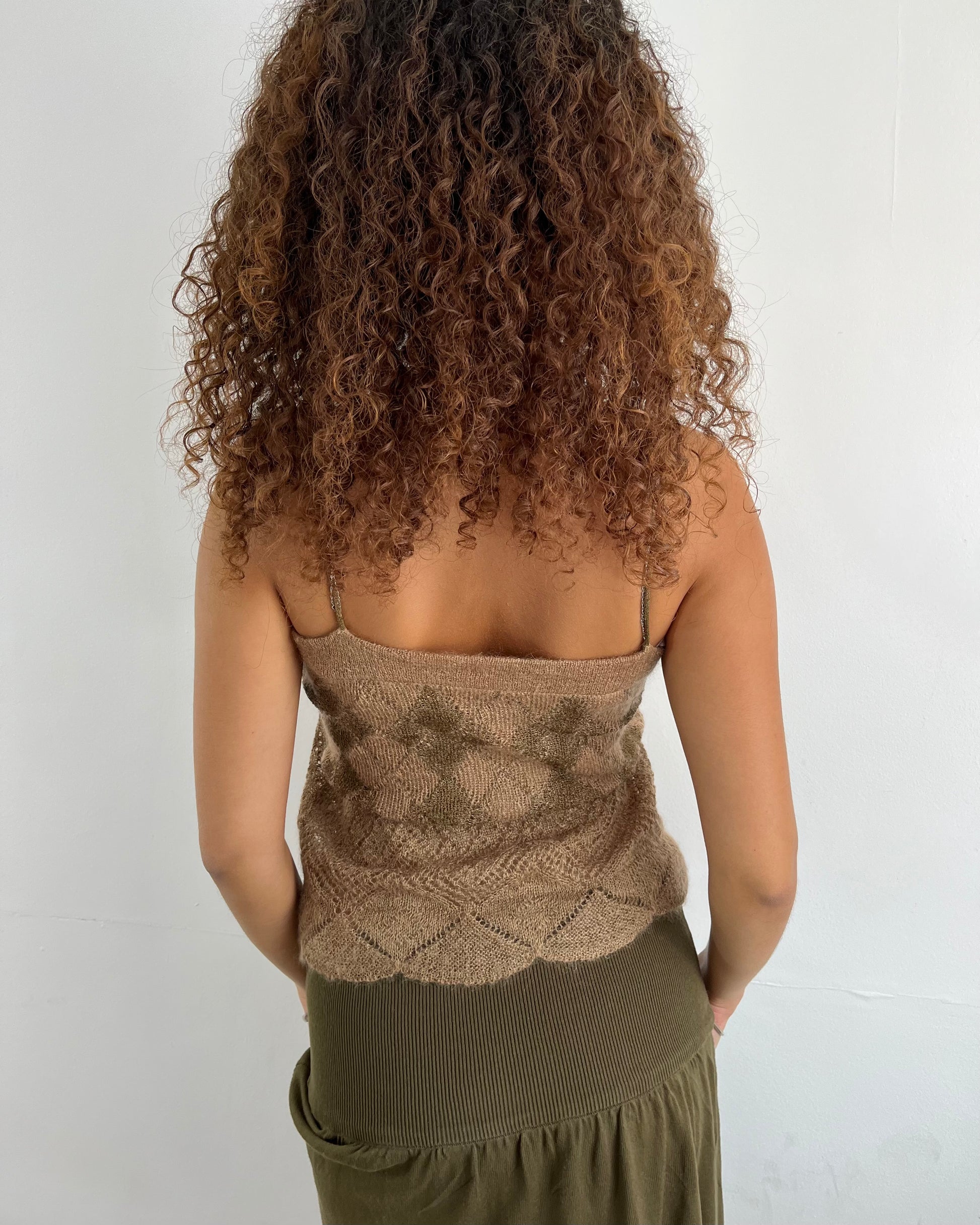 Vintage mohair knit argyle cami with ribbon tie detail.