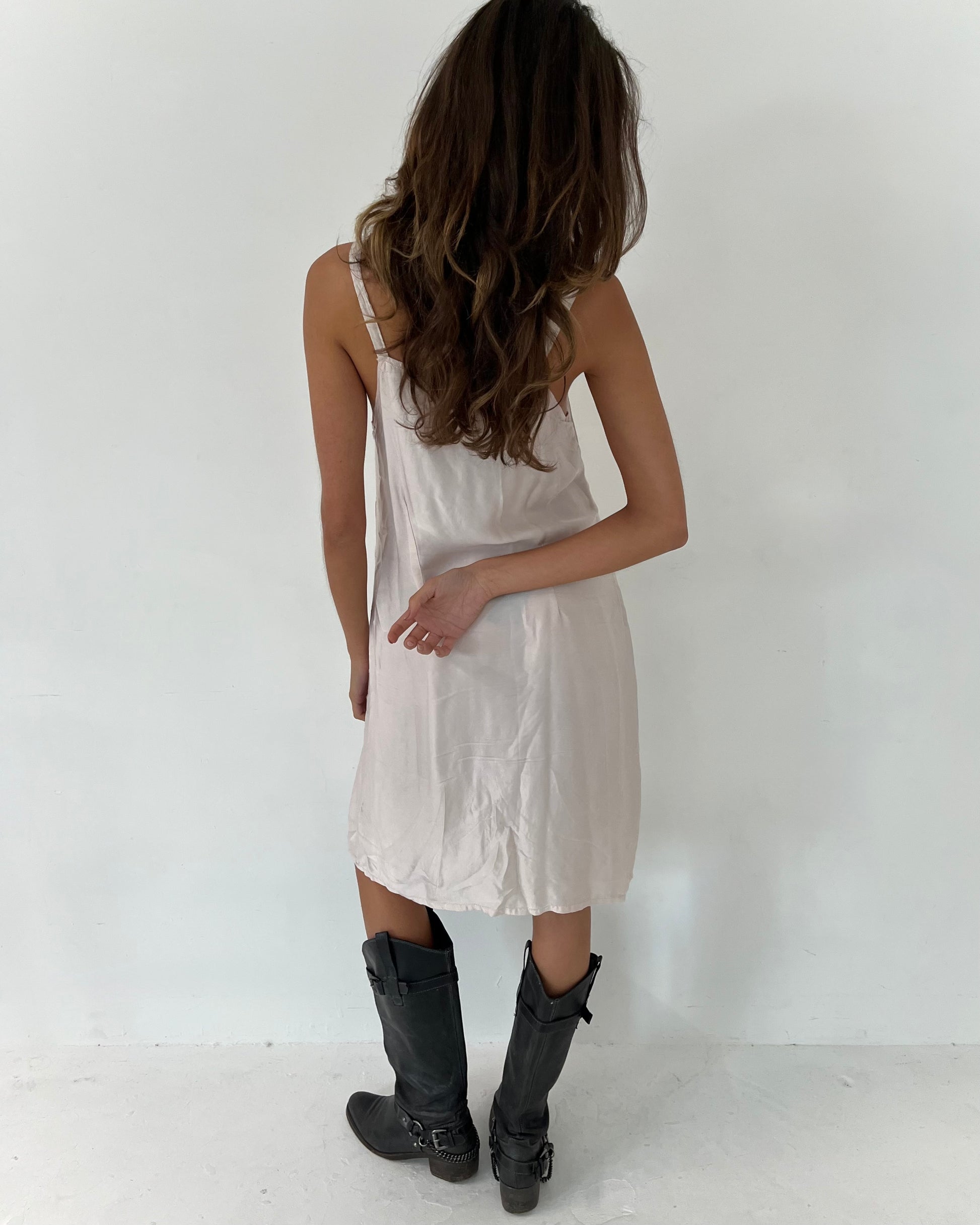 Vintage pale pink silky slip dress.